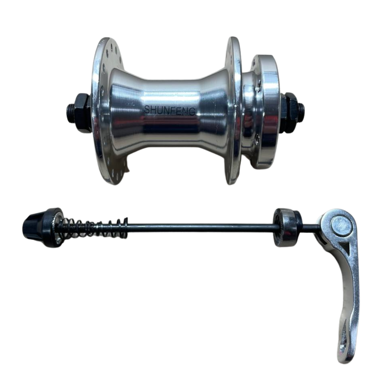 Втулка передня кулька алюміній під диск 36 спиць хром 108 мм Shunfeng 210
