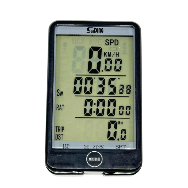 Велоспідометр SD-576C (бездротовий) - це сучасний пристрій для велосипедистів, оснащений підсвічуванням екрану та 27 функціями, які забезпечують повний контроль над поїздкою. Пристрій використовує бездротову технологію передачі даних, що спрощує встановлення і підвищує надійність. Водонепроникний (Waterproof) корпус дозволяє використовувати його за будь-яких погодних умов, а 2,5-дюймовий дисплей з підсвічуванням забезпечує зручне читання даних навіть у темряві. Велокомп'ютер ідеально підходить для любителів велоспорту, туристів та тих, хто стежить за своїми показниками під час тренувань. Компактний дизайн та простота монтажу роблять його практичним вибором для міських поїздок, туризму чи велопрогулянок.