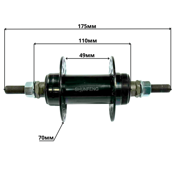 Втулка передня BMX 48 спиць діаметр осі 10 мм довжина 170 мм металева Shunfeng